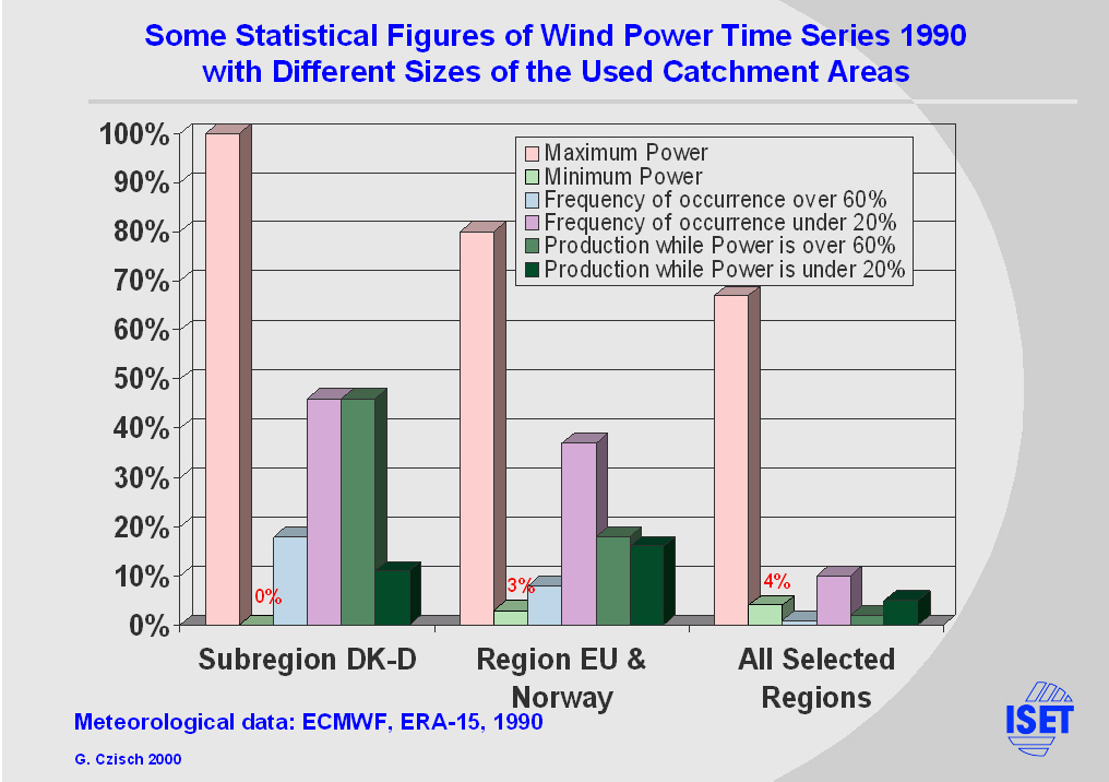 It can recapitulatory be said that the time performance of wind power with increasing size of the catchment area becomes more and more balanced and thus more favourable for the electricity supply. |